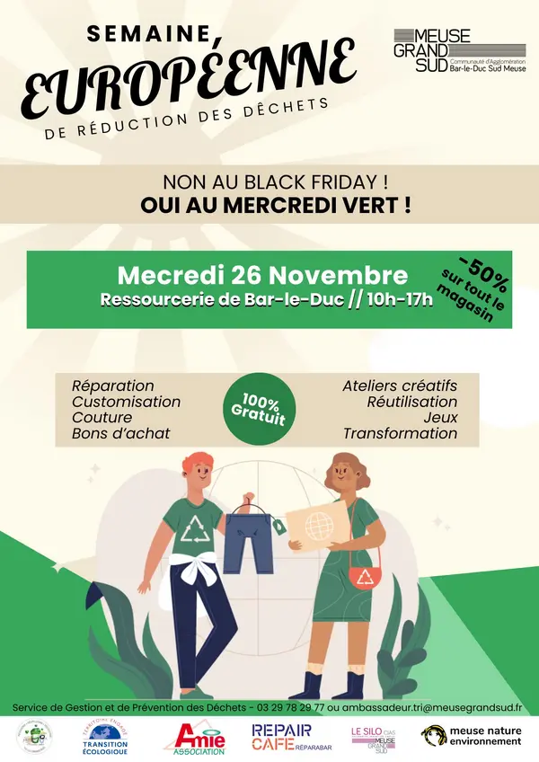 À cette occasion, la Communauté d'Agglomération Meuse Grand Sud, lance une initiative en proposant un "Mercredi Vert" le 26 novembre 2025, de 10h à 17h. Cet événement se veut un contre-pied engagé au consumérisme du Black Friday, invitant les habitants à privilégier l'économie circulaire, la réparation et le réemploi.